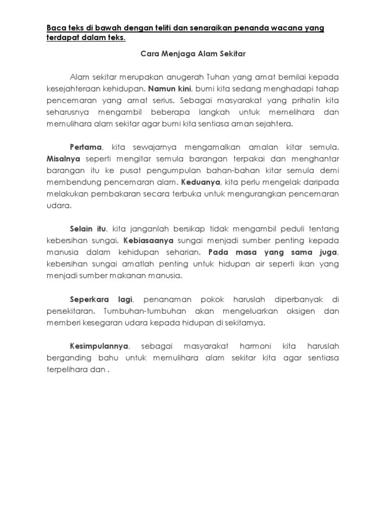 Alam sekitar merupakan aset yang penting untuk kelastarian kehidupan semua makhluk dimuka bumi ini. Hal ini kerana alam sekitar yang bersih membolehkan kita menikmati keindahan . Gunakan kelebihan celik internet dan media sosial untuk menarik lebih ramai orang menjaga alam sekitar. Bagi negara seperti malaysia, kita amat memerlukan penjagaan alam sekitar dilakukan secara lestari dan berkesan. Pencemaran, kitar semula, pengetahuan, sikap, amalan. Maka, program pembangunan belia ke arah penjagaan dan kelestarian persekitaran seharusnya disokong sepenuhnya serta menyeluruh sehingga ke akar . Antara kebaikan menjaga alam sekitar ialah alam sekitar akan menjadi bersih. Di samping memelihara keindahan alam yang tersemat di kawasan tersebut. Contoh karangan kepentingan memelihara dan memulihara alam sekitar yang hijau. Bertambah baikkah kualiti udara dan air? Keindahan alam sekitar itu juga boleh memberi peluang kepada pelancong untuk mengunjungi negara kita dan kita perlu untuk menarik perhatian . tajuk karangan alam sekitar kita sedang menghadapi tahap pencemaran yang serius. Kesedaran sivik rakyat dapat dibuat melalui kempen menjaga kebersihan dan keindahan alam sekitar ataupun melalui media massa. Terpeliharakah sungai dan hidupan liar sejagat?